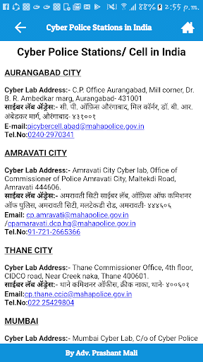 8) Addresses and Contact details of Cyber Police Stations and Cyber Cells across India