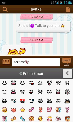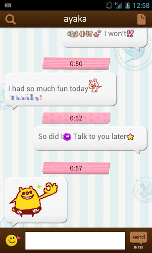 SMS is a convenient way to communicate with your friends, and it will be much more fun with emoticonssmileys to color your communication with them;DecoMessage lets you add fun to your SMS messages you can select from thousands of totally free emojistamps that are offered via ;DcloudMain Benefits of ;DecoMessage:Access to thousands of free emoticons smileys, and stamps to send to your friends ONew emoticons are constantly being added everyday for you to useA wide variety of emoji are available to suit any situationNot only are there small emoticons, but also larger fullsize stamps as wellConvenient interfaces are available where you can quickly and easily select emoji to insert into messages.;DecoMessage is the perfect SMS app for anyone who loves emoticons, emoji, or stampsNote: In order to see the messages that have emoji or stamps inserted in them, the recipient of your messages will also need to have ;DecoMessage installed. If they dont have ;DecoMessage installed, they will only see the text portion of your messages. In order to use ;DecoMessage, you will need to download ;Dcloud Base App search for dcloud base, which can be downloaded for free in Google Play.;DecoMessage supports the ;Dcloud service giving you access to tens of thousands of emoticons for free;Dcloud is the worlds first smartphone service that offers users completely unrestricted access to tens of thousands of emoji via the cloud.How to Use ;DecoMessage:1.Download both ;DecoMessage and the ;Dcloud Base App2.Open the ;Dcloud Base App, access ;Dcloud, and choose your registration preferences as a member, or as a nonmember; both free.3.Open the ;DecoMessage app, and send sms messages using smileys, emoji, and stamps to your hearts content Main Features of ;DecoMessage:Insert smileys, emoticons, and stamps into your SMS messagesCustomizable interface to match your preferencesMain Features of ;Dcloud:All users get access to over 100 smileysemoticons and 100 stamps that are preinstalled, but registered users also get the following additional features:Ability to download your favorite emoji to your device for easy use.Ability to Search for the perfect emoji to use from our entire library of thousands of emoji;DecoMessages Sister Apps:;Decora ;Decora Use emoticons in your emails using ;Dcloud;Decotter Tweet with emoji using ;Dcloud;Dcloud is completely free of charge. With ;Dcloud, you can use the same smileysemoticons across several apps and devices If you have any questions, comments, feedback, or concerns, contact us directly at:decomessageinfo@bnwmail.jpInquiries via Google Play39;s review listings cannot be replied to, so please feel free to contact us via the email address above.