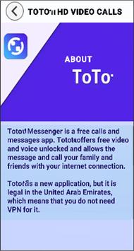 ToTalk provides FREE unlimited voice and video calls for everyone. You can now call your family and friends around the world with video and voice using ToTok when connected to the internet.