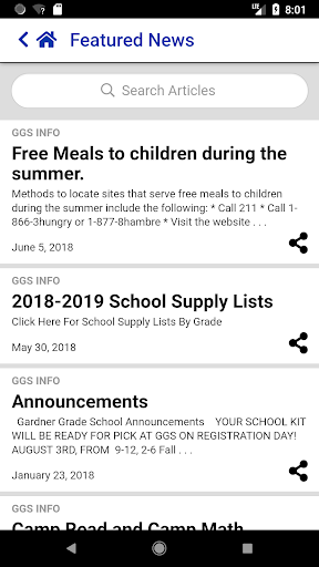 The Gardner Grade School app is a great way to conveniently stay up to date on what’s happening. Some of the features of the app include:
