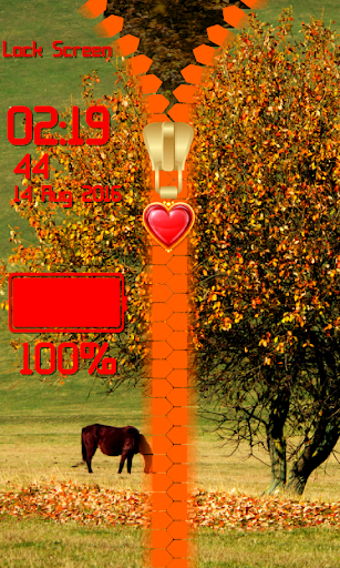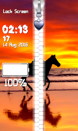 With the coolest zipper locker for screen you can even change its style so pull down the hook of the emerald gemstone or purple heart to unlock your phone. You can also change the color of the chain so pick your favorite one. Then you can imagine that this black stallion with splendid mane that embellishes her neck is in your garden. Get the top Horses Zipper Lock Screen and while you browse the sensational photos. Imagine that you ride the most elegant one at the sensational sunset that paints the surroundings with flaming orange and red.