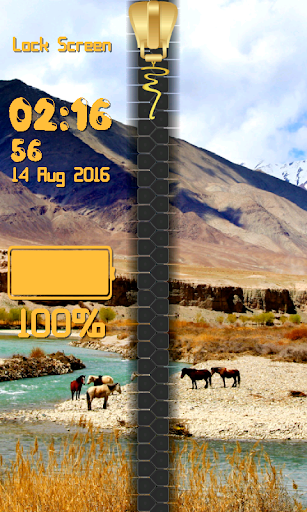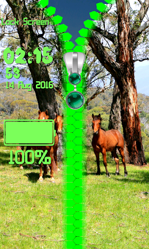 Get the popular Horses Zipper Lock Screen and enjoy the most attractive photos that will decorate your smartphone in the fantastic way. It is designed and developed for people of all ages and it will entertain you magnificently. The installation process is quick and easy and once it is done the magic begins. Enjoy the magnificent picture while this top Horses Zipper Lock Screen loads. Browse through the best photos and select the one you like the most as the foreground for your phone. You can use the same one for the background or open up your gallery and set the photograph you have taken. This zipper locker for screen is the newest way to secure your smartphone. You will never again worry whether it will make another call while it is in your pocket and save yourself from potential embarrassment. Pull down the hook to unlock the screen and use your device. One of the key features is the one which enables you to change the zipper and the color of the chain. You can also track the battery status. What is important and what will impress you the most is the fact that you can set the name which will appear on the top of your screen. Create the original one or use your own. Moreover you can use one of the cool fonts that we have designed exclusively for you. A huge smile will appear on your face when you realize that there is the option that will enable you to turn off or on time and date. Enhance your phone and download free the latest Horses Zipper Lock Screen application by one single touch.