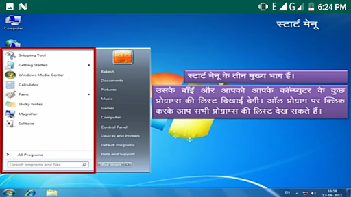 힌디어에서 7 배우기 7 힌디어 : 바탕 화면 시작 메뉴 작업 표시 줄 바탕 화면 가젯 Windows에서 Windows에서 페인트