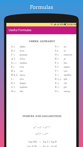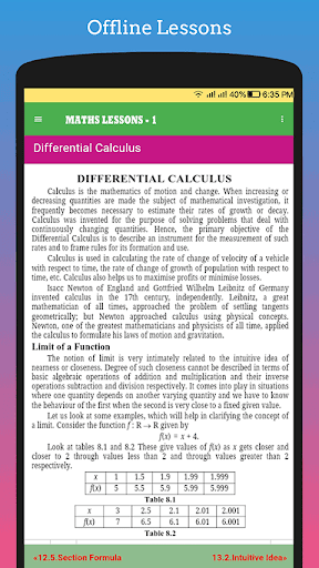 The app covers wide variety of topics. Enough material to help you score high in exams like IIT-JEE, GCSE-Maths, SAT-Maths, A-Level Maths, and other college level competitive exams !
