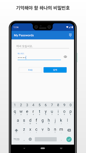 My Passwords 앱은 사용자의 로그인, 비밀번호, 기타 개인 정보를 암호화된 데이터베이스에 안전하게 보관할 수 있도록 도와드립니다. 암호화 키로 사용하는 마스터 비밀번호만 기억하시면 돼요. 인터넷에 액세스하지 않기 때문에 100% 안전합니다.