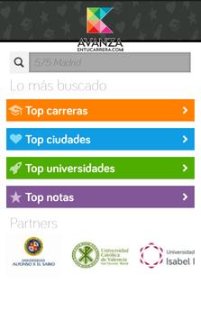 - La sección de "lo más buscado": te muestra las titulaciones, ciudades, universidades y notas de corte más consultadas por los usuarios de la aplicación.