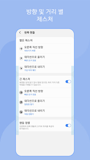 제스처 사용에 완전히 익숙해 지면, 긴 제스처를 켜거나 핸들 추가를 통해 더 많은 동작을 제스처에 설정 가능 합니다.