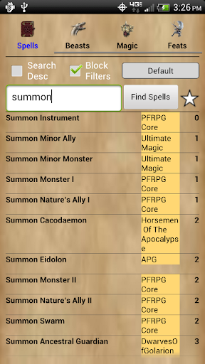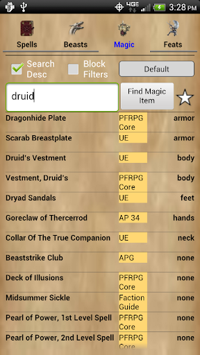 Gain fast access to all Spells, Feats, Monsters, and Magic Items for use in the Pathfinder Role Playing Game.