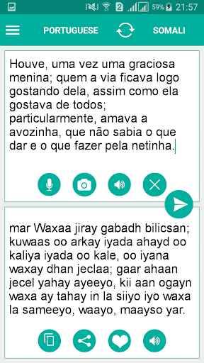 This free app is able to translate words and text from Somali to Portuguese, and from Portuguese to Somali.
