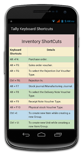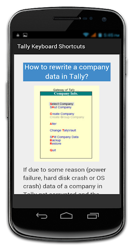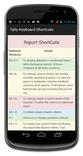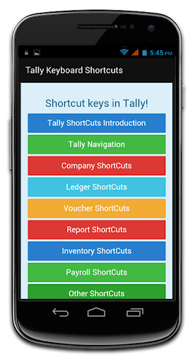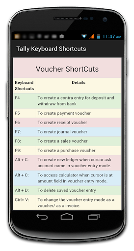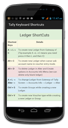 There are many shortcuts keys are explained in this app related to company, ledgers or vouchers.