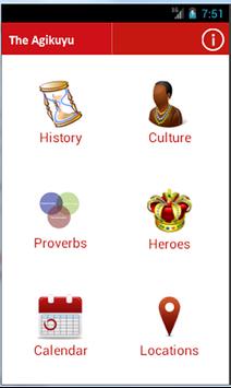 The Agikuyu provides you with educative information of the rich History, culture, proverbs, beliefs, heroes, calendar and food of the Agikuyu People of Kenya. This App is dedicated to my Late Guka (Grandpa) Ambrose Wakaria