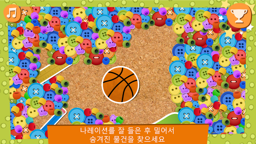 • 럽어덥(Rub-a-Dub) – 설명을 듣고 모래, 단추, 페인트를 밀어서 밑에 숨겨진 물체를 식별합니다. 이 게임은 ‘pear’와 ‘pencil’ 같은 한 단어로 시작해서 ‘three green paintbrushes’과 같은 복잡한 구문으로 발전되며, 점점 더 고난이도로 진행됩니다.