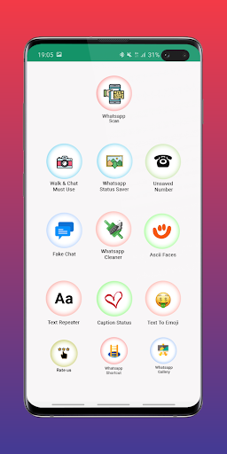 하나의 응용 프로그램의 모든 기능 1.f @ ke 채팅 창조 자 2.텍스트 - 이모티콘 변환기 3.텍스트 리피터 4.WhatsApp 스캔 5.Walk 및 채팅 6.WhatsApp 부스터 루트 없음!** true가 너무 좋습니까?불가능한가요? 모든 언어로 완벽하게 작동합니다.