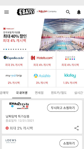 호텔스닷컴, 아고다 등 여행/호텔예약 시에도 캐시백을 적립해 드립니다.