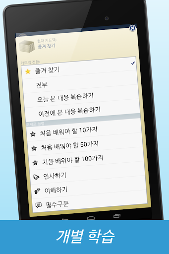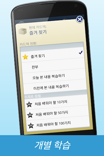 카드를 즐겨찾기로 표시하여, 하루에 중점적으로 배우고 싶은 단어로만 구성된 카드덱을 직접 만들 수 있습니다. 복습 모드를 켜서 오늘 연습한 내용을 복습하면 기억력이 향상됩니다.