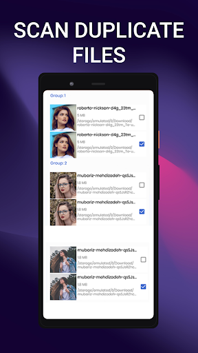 주요 기능 : 카테고리별로 파일 유형 선택 - 사진, 비디오, 오디오, 문서 강력한 중복 파일 찾기 및 제거기 빠른 스캔 ▸ 뷰 중복 ✔ 중복 파일을 쉽게 찾고 삭제하기 쉽다 ▸ 다국어 지원