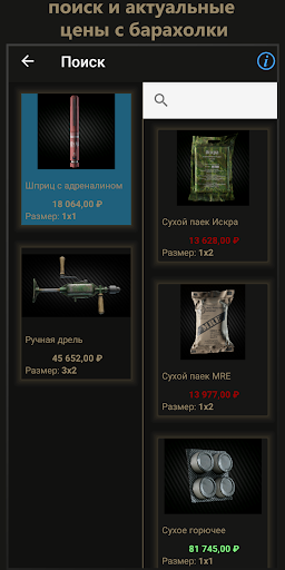 항목의 항목 비교 벼룩 시장에서 특정 품목 "Tarkov에서 탈출"(예, 신청의 벼룩 시장).