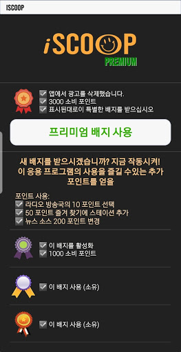 🔘 인앱 결제-사용자가 무료 버전에서 프리미엄으로 업그레이드하고 추가 포인트 및 배지를 구매할 수있는 스토어 (프리미엄은 앱에서 광고를 제거하고 새로운 배지 및 포인트로 보상)