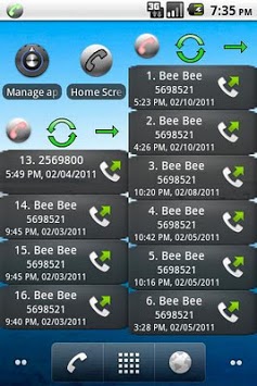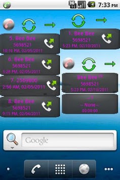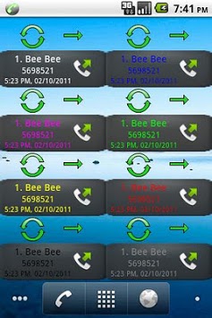 This application contains 4 home screen call log widgets. Each provides direct calling to the number shown.