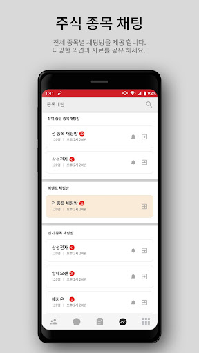-쪽지 / 1:1대화 / 비밀쪽지 / 미스리 대화방 /종목채팅 등 다양한 대화 형식 제공