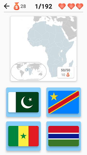 * 플래시 카드-추측하지 않고 응용 프로그램의 모든 플래그,지도 및 수도를 탐색; 잘 모르고 앞으로 반복 할 플래그를 확인할 수 있습니다.