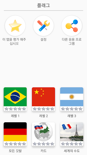 6) 수도 : 전 세계 모든 국가의 국기와 수도를 일치시킵니다. 예를 들어, 프랑스 국기가 표시되면 정답은 파리입니다.