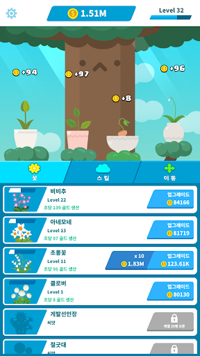 - 꽃과 나무를 업그레이드 하세요. 더 많은 골드를 벌어들일 수 있습니다.