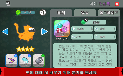 플랫폼에서 플랫폼으로 넘어가면서 경쟁자의 속도를 늦추기 위해 아이템과 부스트를 고르세요. 그리고 경쟁자를 먼지에 남겨두세요. 코인을 수집하여 고양이와 개를 맞춤 설정하고 애완동물 세계를 업그레이드하세요. 애완동물을 맛있는 음식으로 취급할 수도 있습니다!