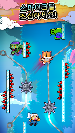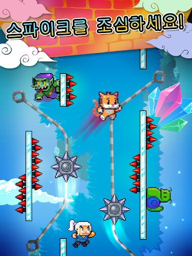 바닥부터 시작해서 벽에서 벽으로 점프하고 민첩하게 피하고 빠르게 솟아오르고 추락하지 않도록 노력하고 공중회전으로 다시 뛰어오르고 빙글빙글 돌지만 타이밍을 잘못 맞추면 바닥으로 곤두박질친답니다.