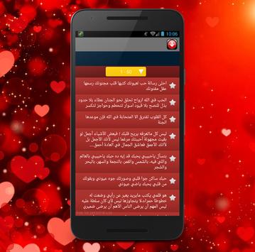 الرسائل مستوحاة من أشعار عاطفية رائعة لكبار الكتاب والشعراء، وكذلك مستوحاة من كلمات بعض الأغاني المؤثرة والتي أبكت الملايين، يمكنك الإحتفاظ بها في هاتفك والولوج إليها متى أردت، لاتنسى كذلك أن تخبر أصدقائك به لكي تتبادلو رسائله، والاستمتاع بمميزاته الرائعة جدا