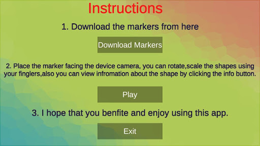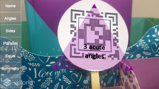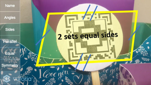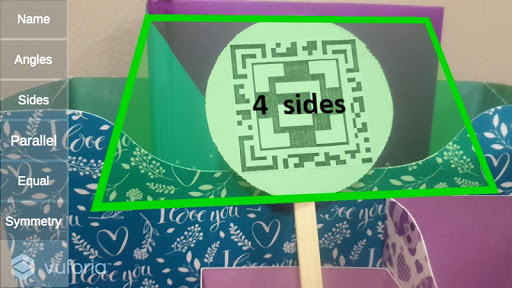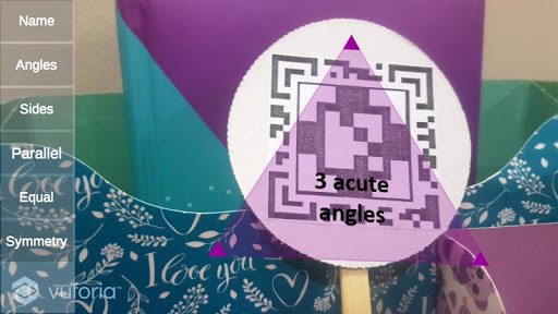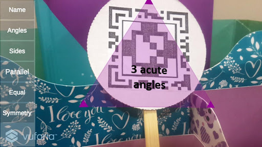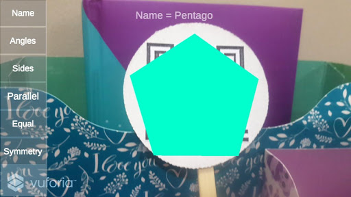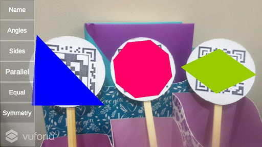 Program ini bersifat pendidikan dan menggunakan Augmented reality (AR), ia menunjukkan 12 bentuk dua dimensi: persegi, segi empat tepat, bulatan, berlian, trapezium, parallelogram, pentagon, segi enam, segi delapan, segitiga tepat segitiga akut, dan segitiga tepat.Anda perlu memuat turun penanda untuk menggunakan program.