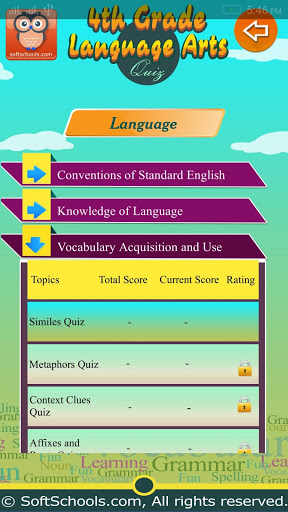 4th Grade Language Arts Contains below Topics.. * Literature * Informational Text * Foundational Skills * Writing * Language