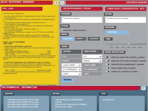 - On-screen Quick Reference Handbook (QRH), Environmental Information and interactive Decision Making Panel
