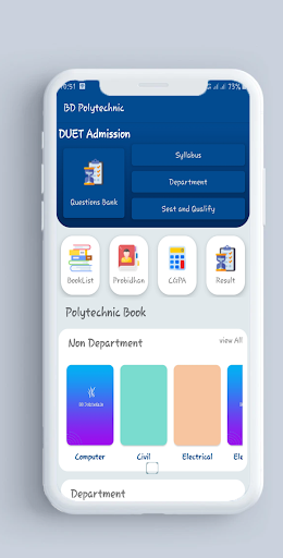 Diploma app is an educational app for Diploma and Polytechnic institute level all of student ,teachers technical education in Bangladesh. Any one get easily recent DUET admission information, BTEB notice, booklist , Academic Calender, probidhan and bteb result. Also any one see their CGPA calculate and government and private job. Diploma information, technical also here. We will add more features in future.