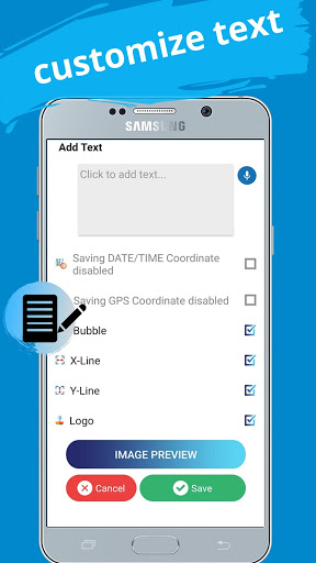 Write on picture to make complete photo documentation. Just dictate your text to add picture caption when taking a picture. The text on photo is automatically displayed on your image via speech-to-text translation. This professional camera saves your time and money for making photo document.