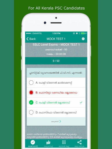 Kerala PSC Test app is for all who are preparing for Kerala PSC Examinations. The kpsc app for Kerala PSC Exam allows to attend psc mock tests and to analyze the psc result. Kerala PSC mock tests includes psc questions asked in previous psc exams. PSC App is like psc thulasi when you want for psc login