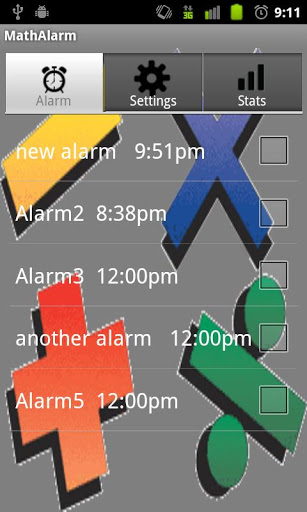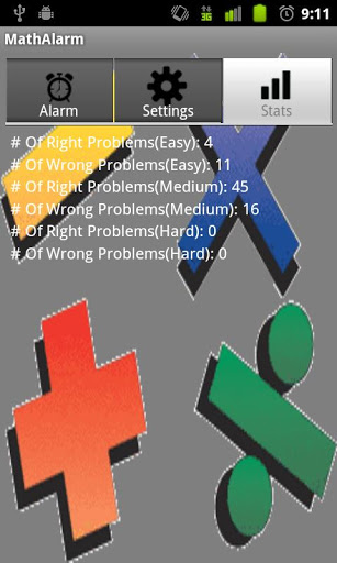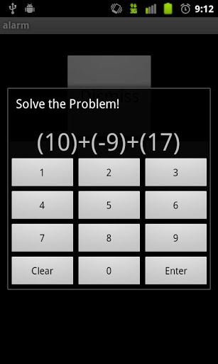 Do you have trouble waking up in the morning? Or do you keep hitting the snooze button every time the alarm goes off?If so try this MathAlarm app.It39;s just like any other alarm but when it goes off, a math problem will pop up and you have to solve the problem in order to dismiss the alarm.MathAlarm featuresSet up 5 different alarmsPop up problem can be turned off so it would be a regular alarmDifferent difficulty levels for the math problemStats tab to show how many times you got a problem right or wrongNoteThis app is still in beta so there are some minor bugs im fixing. If you notice any problems whatsoever please contact me through emailrios.dev@gmail com or twitter riosem so I can fix the problem as soon as possible.
