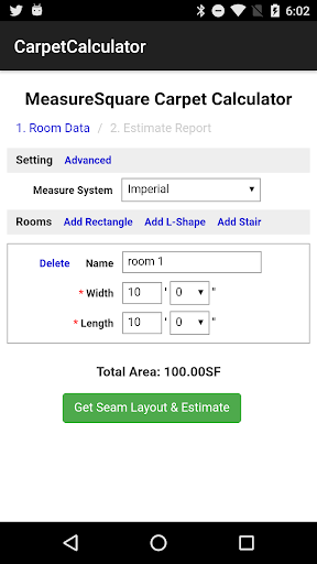 MeasureSquare Carpet Calculator adalah kotak alat kalkulator lantai untuk karpet, jubin, kayu, cat, kertas dinding atau sebarang produk yang berlaku untuk lantai, dinding dan siling.Ia direka untuk pemilik rumah, DIY, atau pengguna kantor.