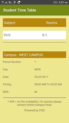 mode brings the list of time table where student can see Weekly or Daily time table.