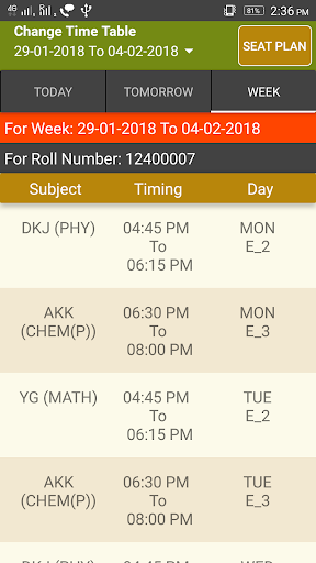 Student Time Table Android App is one line (Required internet connection) officially for all the Resonance student.This app provide the time table for week . which selected by the user.App have two mode