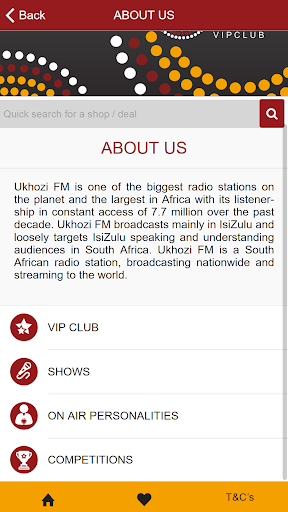 The App mainly hosts ama-benefits for Ukhozi FM VIP CLUB.
