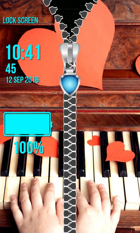 Become famous overnight! Believe because it is possible at least virtually. Download free the newest Piano Zipper Lock Screen app and let it take you to the land of your dreams with the little help of the latest collection of photos. Sit at your favorite musical instrument and create the fabulous composition. It will become the best love song ever and it is dedicated to your soulmate. Place the red hearts above the keyboard and perform in front of the audience. With the top Piano Zipper Lock Screen you will feel like you are the most famous person on this planet. You have it all and there is the evidence that your love life is doing fine. The single red rose is placed over the musical instrument that you are playing tonight. Your dearest one is making for you incredible surprise. Get the popular zipper locker for screen and explore all the advantages of it. Look you can even adjust the color and the font of time and date. Make sure that they suit your foreground and to do that just tap once the preview button. Also you can change the style of the hook. Browse the coolest collection of them and pick the one that will embellish the chain magnificently. Pull down the golden star to unlock your phone and get the awesome Piano Zipper Lock Screen. Explore the pictures and let them take you into the world of your dreams. The red curtain is rising and you are on the stage in front of the huge audience. The next moment you are admiring the nature and the green field.