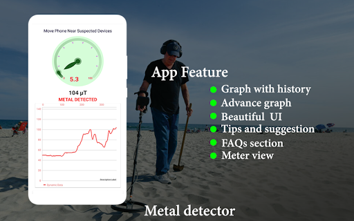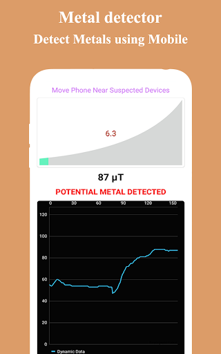 Hidden Metal detectors free the best free metal detector app for android is here download and enjoy the free metal detector android app to download just click on install. free metal detector android app you might use the metal detector it to find electrical wires in walls like a stud finder iron pipes on the ground. or pretend it is a ghost detector and scare someone. Hidden Metal finder some people also is it as body scanner metal detector for entertainment. Live graph of reading is make it more cool and interesting. user friendly interface so very easy to use. If your phone have not electromagnetic sensor this app will inform you.