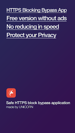 Unicorn HTTPS Blocking Bypass App dibuat untuk memberikan kebebasan akses internet dan perlindungan maklumat peribadi.Semua pengguna Internet boleh merasa selamat dan menggunakan aplikasi ini secara percuma.