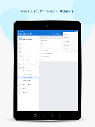 ကမ္ဘာတစ်ဝှမ်းရှိဖောက်သည်ဆာဗာများနှင့်စားပွဲတင်ကွန်ပျူတာများနှင့် ဆက်သွယ်. အပြန်အလှန်ဆက်သွယ်ရန်နှင့်စားပွဲခုံများနှင့်အပြန်အလှန်ဆက်သွယ်မှုရှိစေရန် STERSTOP ဗဟို MSP ဟုလူသိများသော Manageengine Endoid ဗဟို MSP Android android android addr.