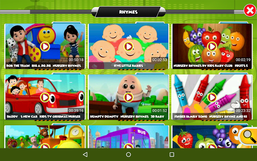 Dearning Rhymes, နံပါတ်များ, အရောင်များ, ပုံစံများနှင့်ပုံသဏ္ and ာန်များနှင့်အခြားအရာများသည် KidstV အက်ပ်မှသီချင်းများဖြင့်လွယ်ကူစွာလွယ်ကူသည်။ သင်၏ကလေးငယ်များသည်၎င်းတို့အတွက်အထူးပြုလုပ်ထားသောဗီဒီယိုများကိုကြည့်ရှုစောင့်ရှောက်ရုံသာမကဘဲ၎င်းတို့ကိုကြည့်နေစဉ်ပညာရေးတန်ဖိုးကိုရလိုကြသည်။