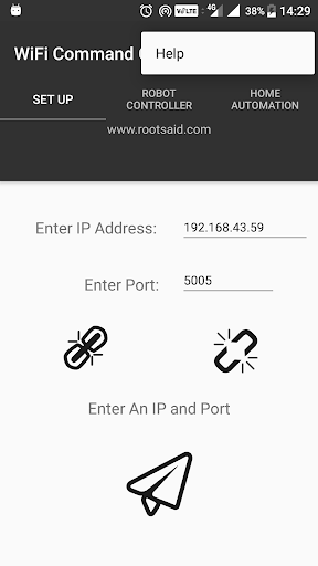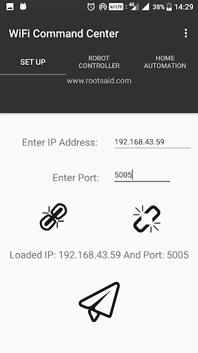 Using this App, you can easily send UDP commands to a Robot or a any custom build Home Automation System using Arduino, Raspberry Pi or any other board, connected to a network and control it using your mobile phone.