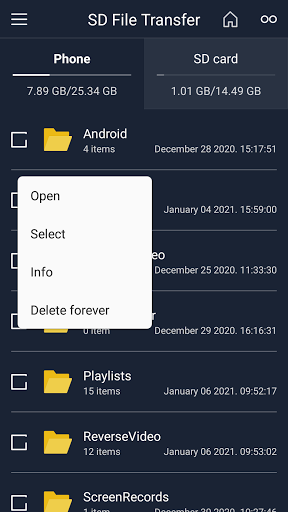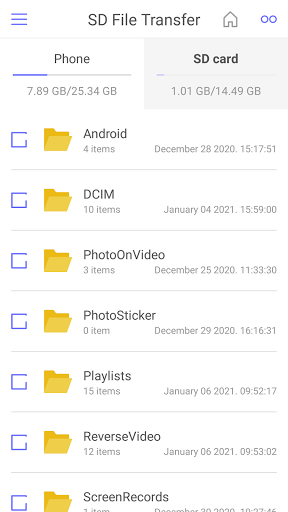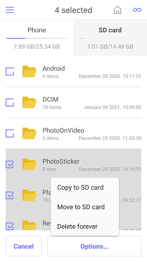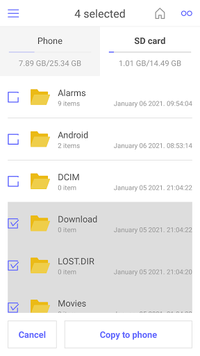 With this app, you can free up your device internal memory by move your files to the SD card, or copy files from the SD card to your phone for easy management and use. Just select files you want to move or copy (back up), click a big button and that’s all, fast and easy.