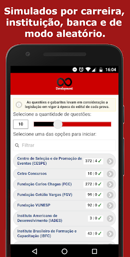 [✔] Simulados por carreira, por instituição, por banca e de modo aleatório;