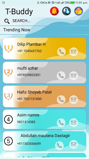T-Buddy သည် Kharghar ရှိ Taloja ကျေးရွာရှိ Taloja ကျေးရွာမှဒေသခံ area ရိယာအဆက်အသွယ်စာအုပ်လျှောက်လွှာဖြစ်သည်။ ၎င်းတွင် Taloja ကျေးရွာရှိနေထိုင်သူအားလုံးပါ 0 င်သည်။ လူအချို့နှင့်ဆက်သွယ်လိုသူမည်သူမဆိုသည်သက်ဆိုင်ရာပုဂ္ဂိုလ်၏အရေအတွက်ကိုသာရှာဖွေခြင်းကိုရိုးရိုးရှင်းရှင်းရှာဖွေရန်သို့မဟုတ်၎င်းတို့အားစာသားမက်ဆေ့ခ်ျပို့ခြင်းများကိုချက်ချင်းပေးပို့ခြင်းသို့မဟုတ်စာတိုပေးပို့ခြင်းကိုချက်ချင်းပေးပို့နိုင်သည်။